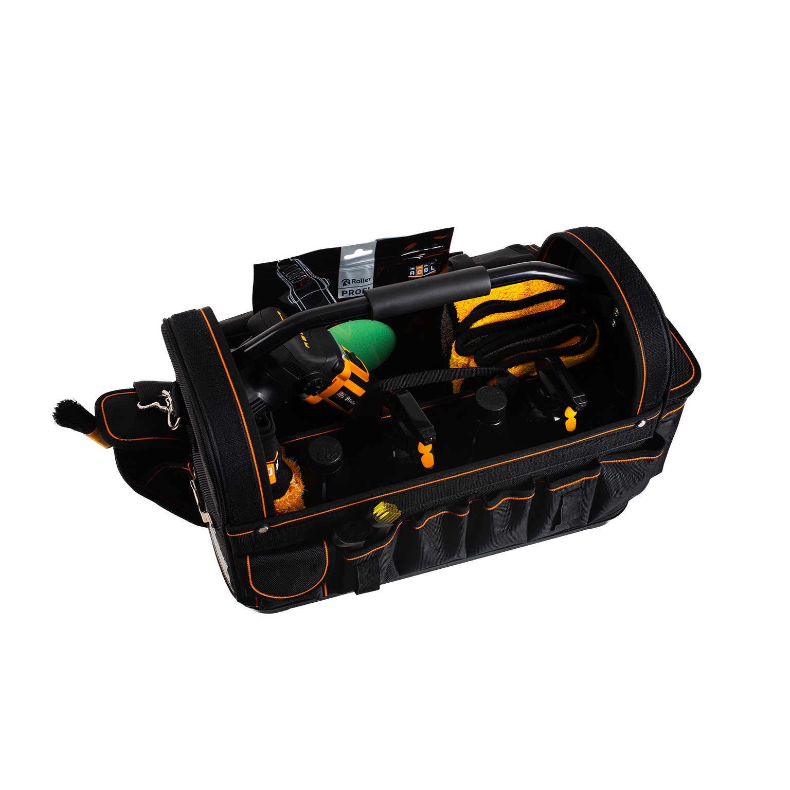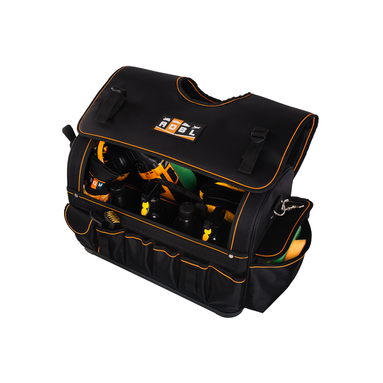 ADBL DOCTOR duża torba na akcesoria jest propozycją dla specjalistów i najbardziej wymagających miłośników detailingu. Można w niej bez problemu pomieścić wszystkie najpotrzebniejsze kosmetyki, akcesoria, przyrządy czy nawet maszyny polerskie. Liczne zewnętrzne kieszonki dają łatwy dostęp do produktów i pomagają zachować porządek. Przy tym akcesorium jest estetycznie zaprojektowane i dobrze się prezentuje.