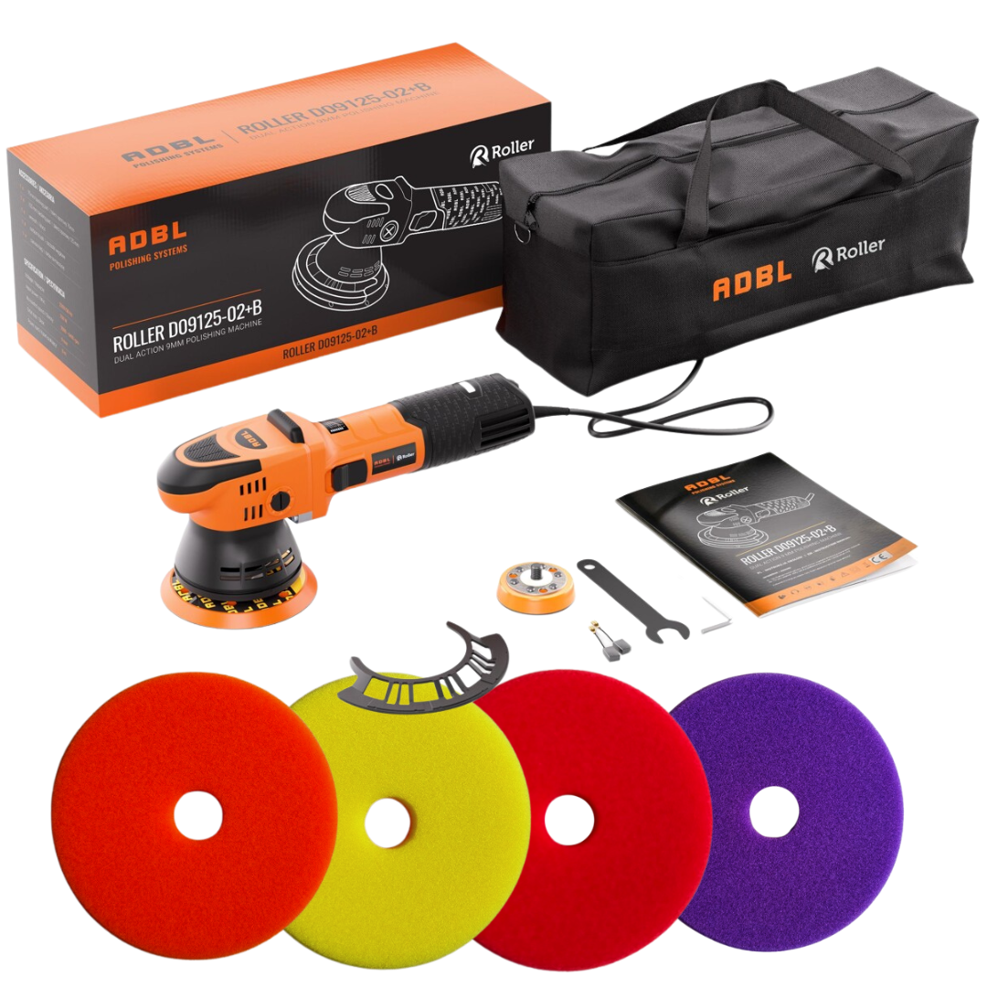 ADBL Roller D09125-02 to maszyna polerska Dual-Action o kompaktowej budowie i niskiej masie, która umożliwia precyzyjną pracę w trudno dostępnych miejscach, takich jak zderzaki czy pakiety aerodynamiki. Dzięki krótkiej głowie i zwartemu korpusowi, narzędzie zapewnia wygodną obsługę, a skok 9 mm w połączeniu z odpowiednimi materiałami polerskimi gwarantuje idealne wykończenie powierzchni.