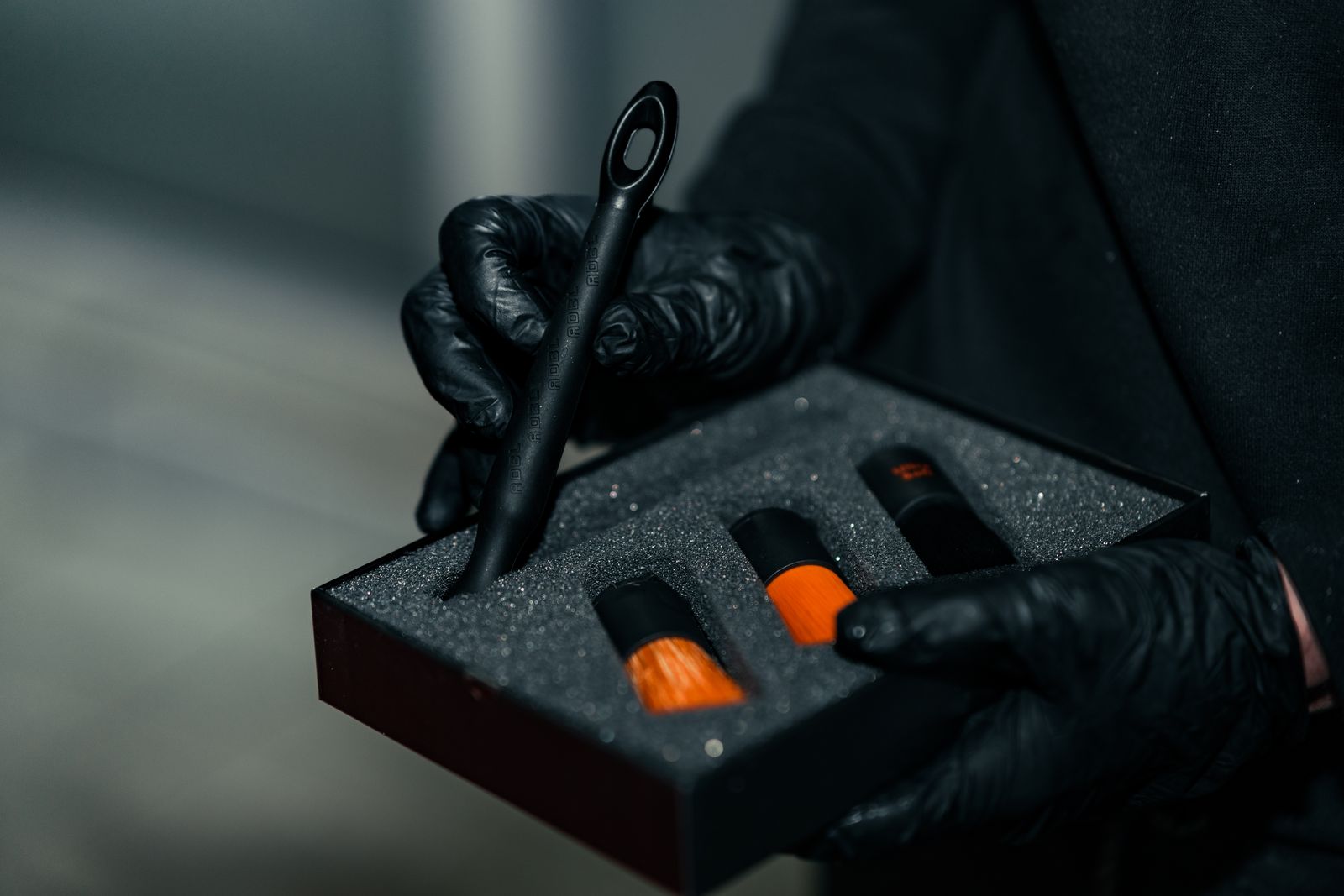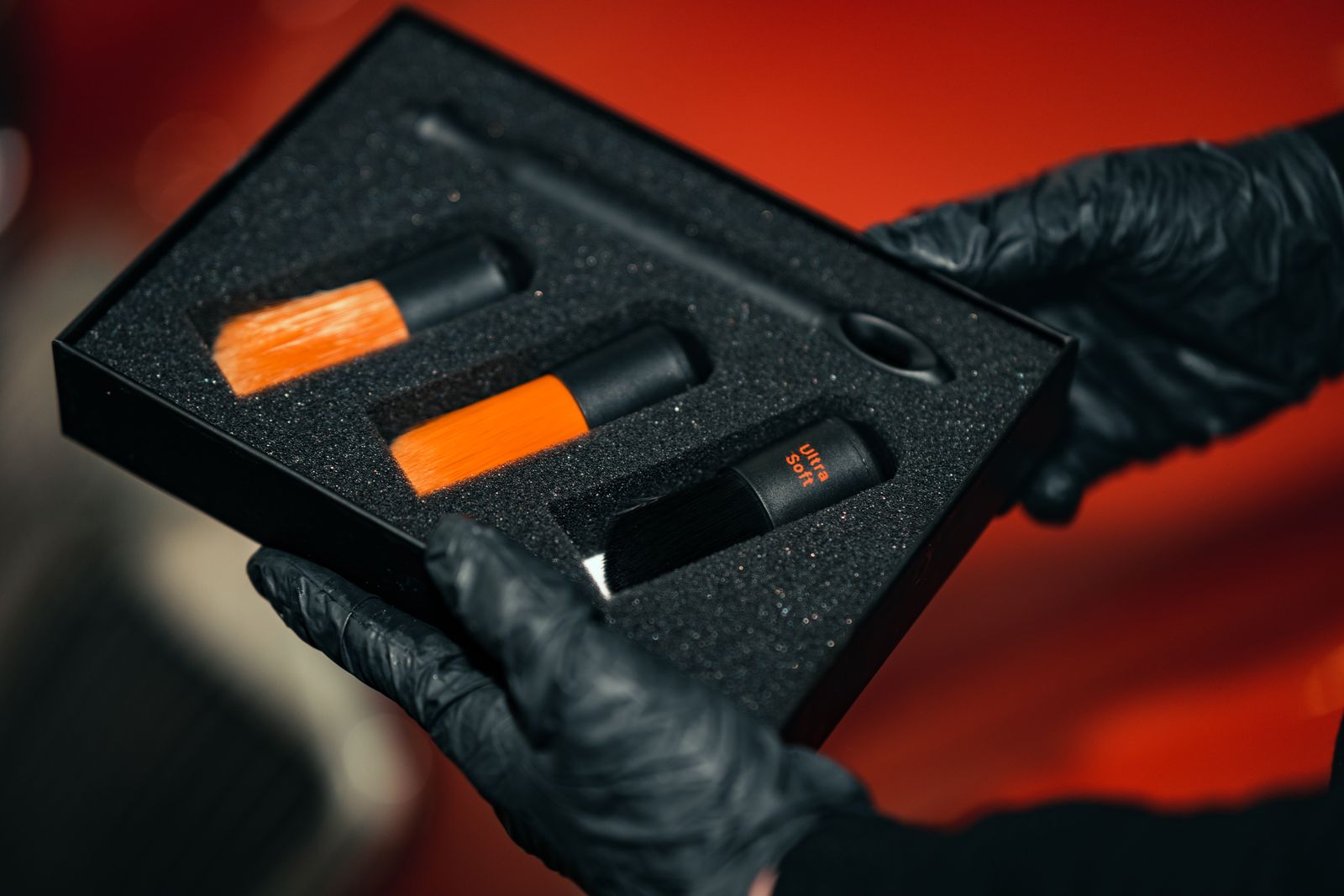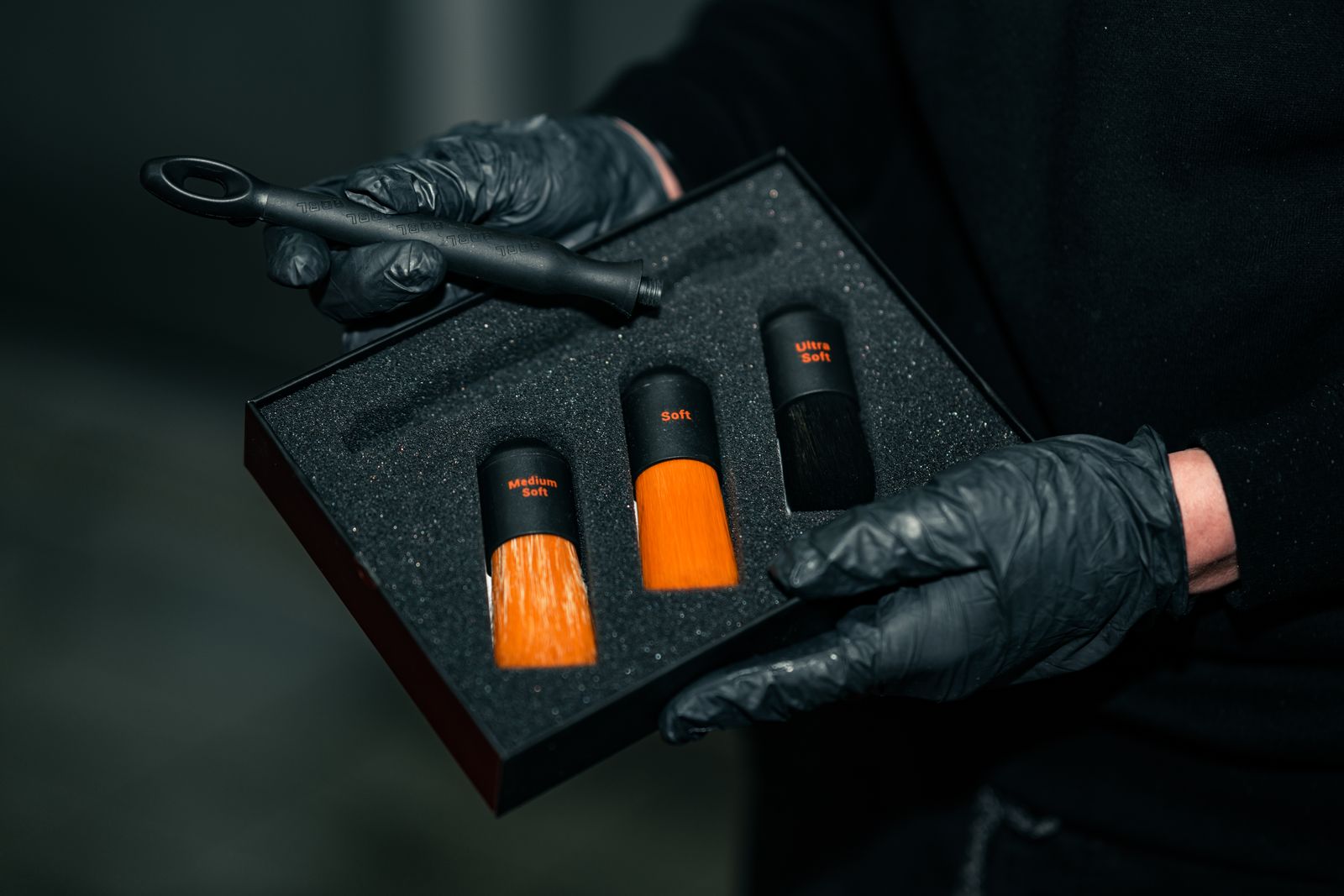 Profesjonalny zestaw pędzli detailingowych z trzema wymiennymi końcówkami i magnetyczną rączką. Różne twardości włosia umożliwiają bezpieczne czyszczenie zarówno delikatnych, jak i trudnych zabrudzeń. Idealny do studia i pracy mobilnej.