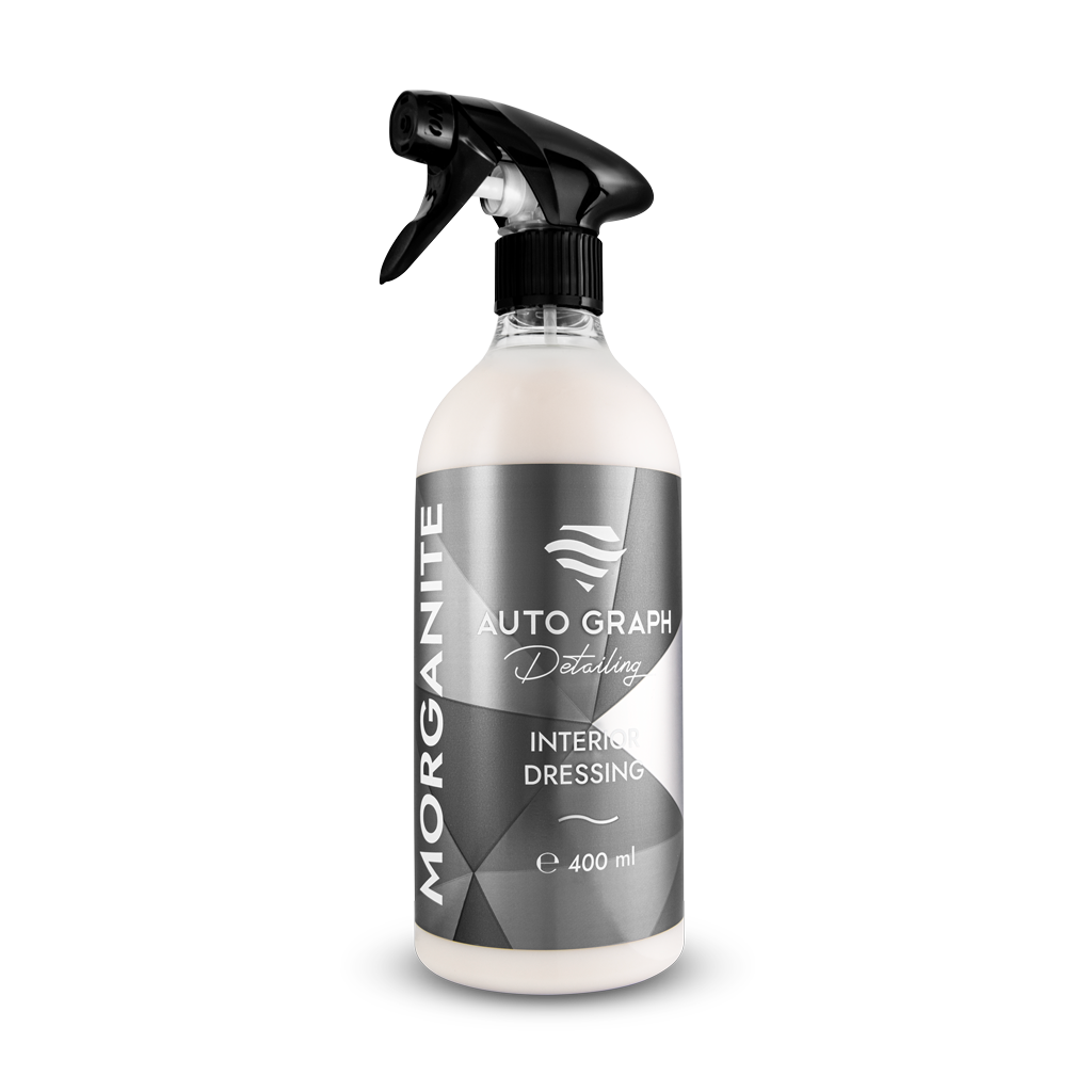 Auto Graph Morganite Interior Dressing to doskonały preparat pielęgnujący i chroniący wnętrze samochodu. Szczególnie przeznaczony do deski rozdzielczej oraz innych elementów kokpitu. Tworzy antystatyczną warstwę ochronną, która zapobiega osadzaniu się kurzu i chroni przed zanieczyszczeniami. Produkt zapewnia eleganckie, satynowe wykończenie i podkreśla głębię koloru. Jest łatwy w użyciu i bardzo wydajny.