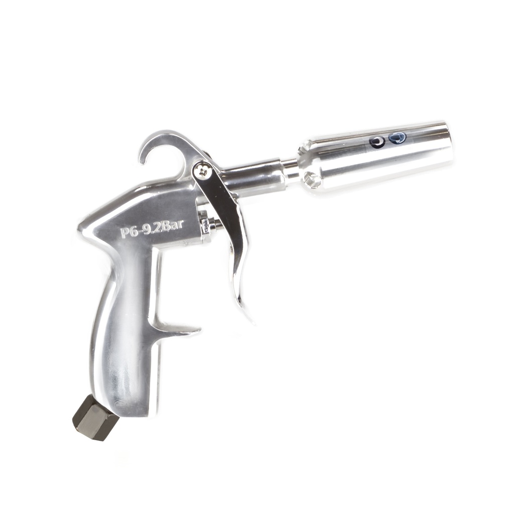 Pistolet do użytku profesjonalnego – doskonale nadaje się do suszenia dużych obszarów (poprzez emisję szerokiego strumienia powietrza), trudno dostępnych miejsc i ogólnych prac warsztatowych, wymagających osuszania wszelakich powierzchni. Wyższy przepływ powietrza – 100% objętości powietrza poprzez zastosowanie dyszy Venturiego. Bezstopniowa regulacja ilości powietrza w dźwigni operacyjnej. Złącze w komplecie.