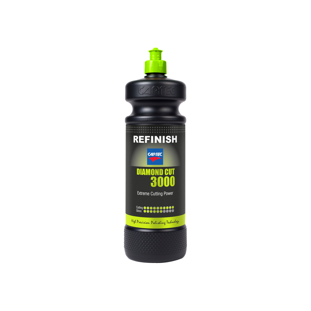 Cartec Diamond Cut 3000 to wysokowydajna pasta polerska klasy cutting, stworzona z myślą o twardych, nowoczesnych lakierach oraz świeżo lakierowanych powierzchniach. Dzięki wyjątkowo mocnej formule skutecznie usuwa głębokie rysy, ślady po szlifowaniu (P1200 i drobniejsze), zamglenia lakieru, strukturę skórki pomarańczy, zacieki oraz wtrącenia pyłowe.