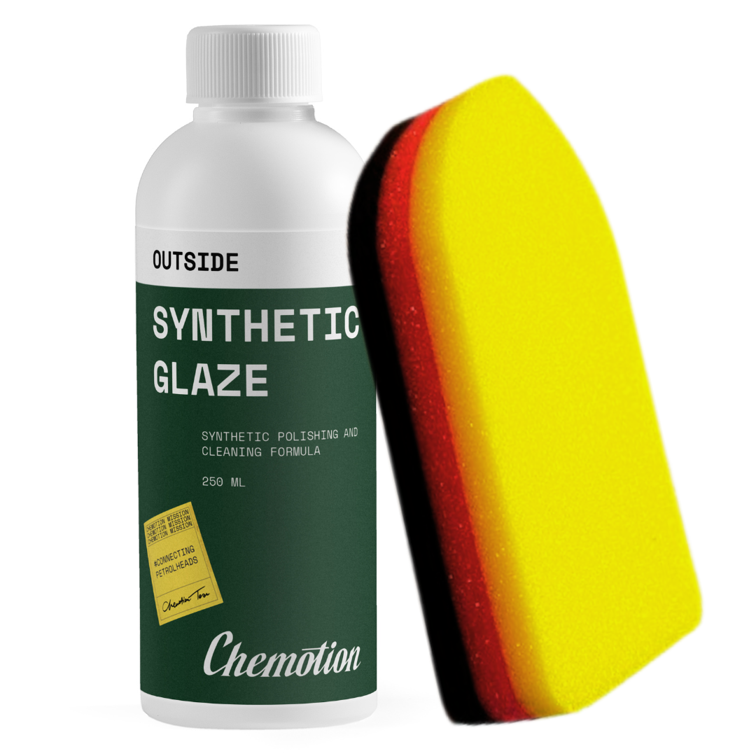 Chemotion NEW Synthetic Glaze to gęsty produkt przeznaczony do ręcznego lub maszynowego oczyszczania i zabezpieczania lakieru. Posiada delikatne właściwości ścierne, które pozwalają na zniwelowanie niewielkich zarysowań i hologramów. Skutecznie usuwa przebarwienia i zmatowienia, tworząc szklistą powłokę polimerową, która jest bardzo śliska w dotyku i wypełnia ubytki. Po aplikacji lakier nabiera intensywnej barwy i lustrzanego połysku, stanowiąc świetną bazę pod woski ochronne.