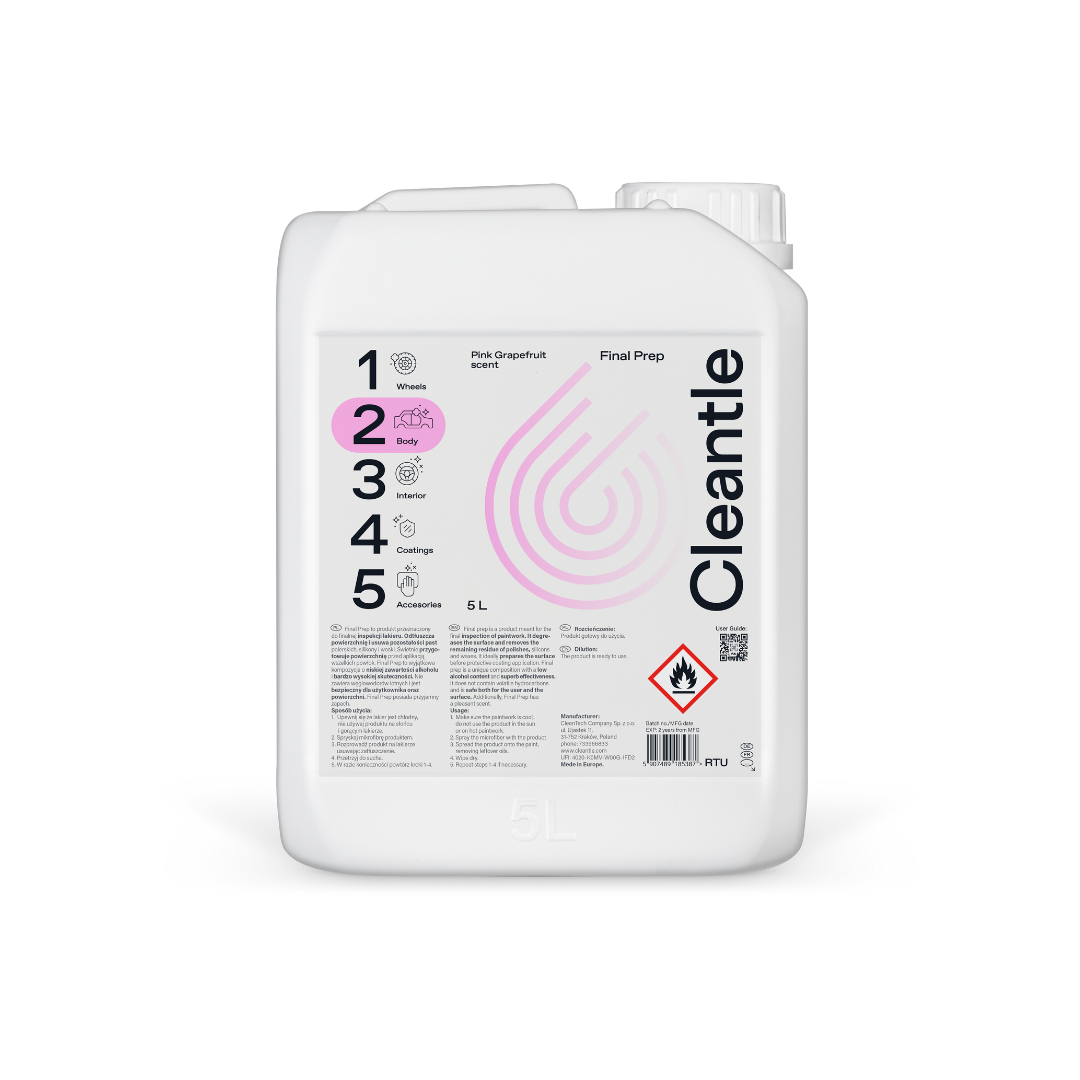 Cleantle Final Prep to zaawansowany produkt stworzony z myślą o finalnej inspekcji lakieru, zapewniając doskonałe przygotowanie powierzchni przed aplikacją wszelkiego rodzaju powłok ochronnych