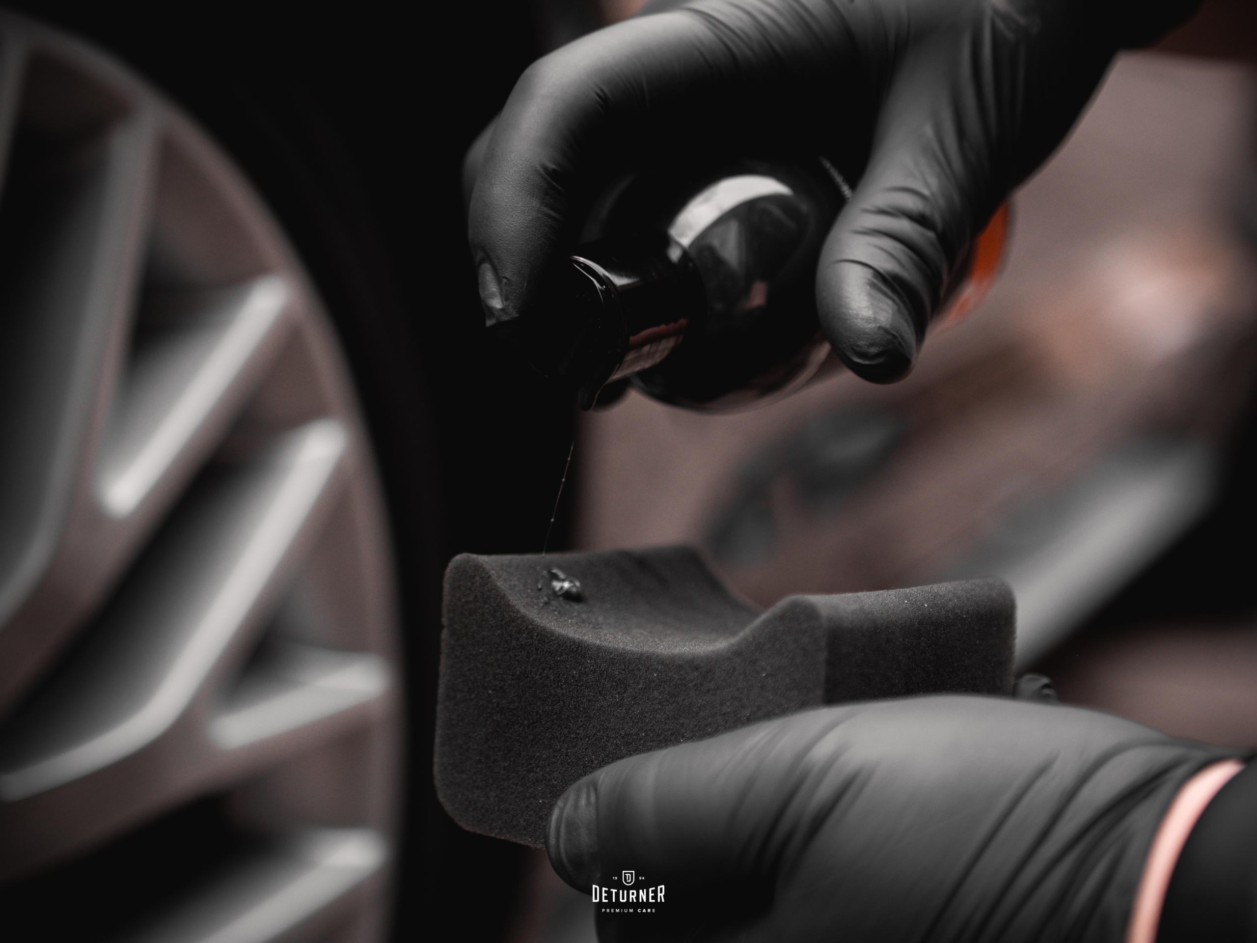 - Dla najlepszych rezultatów, dokładnie oczyść powierzchnię opony lub plastiku za pomocą dedykowanego cleanera lub APC (np. Deturner Ready Interior Cleaner).