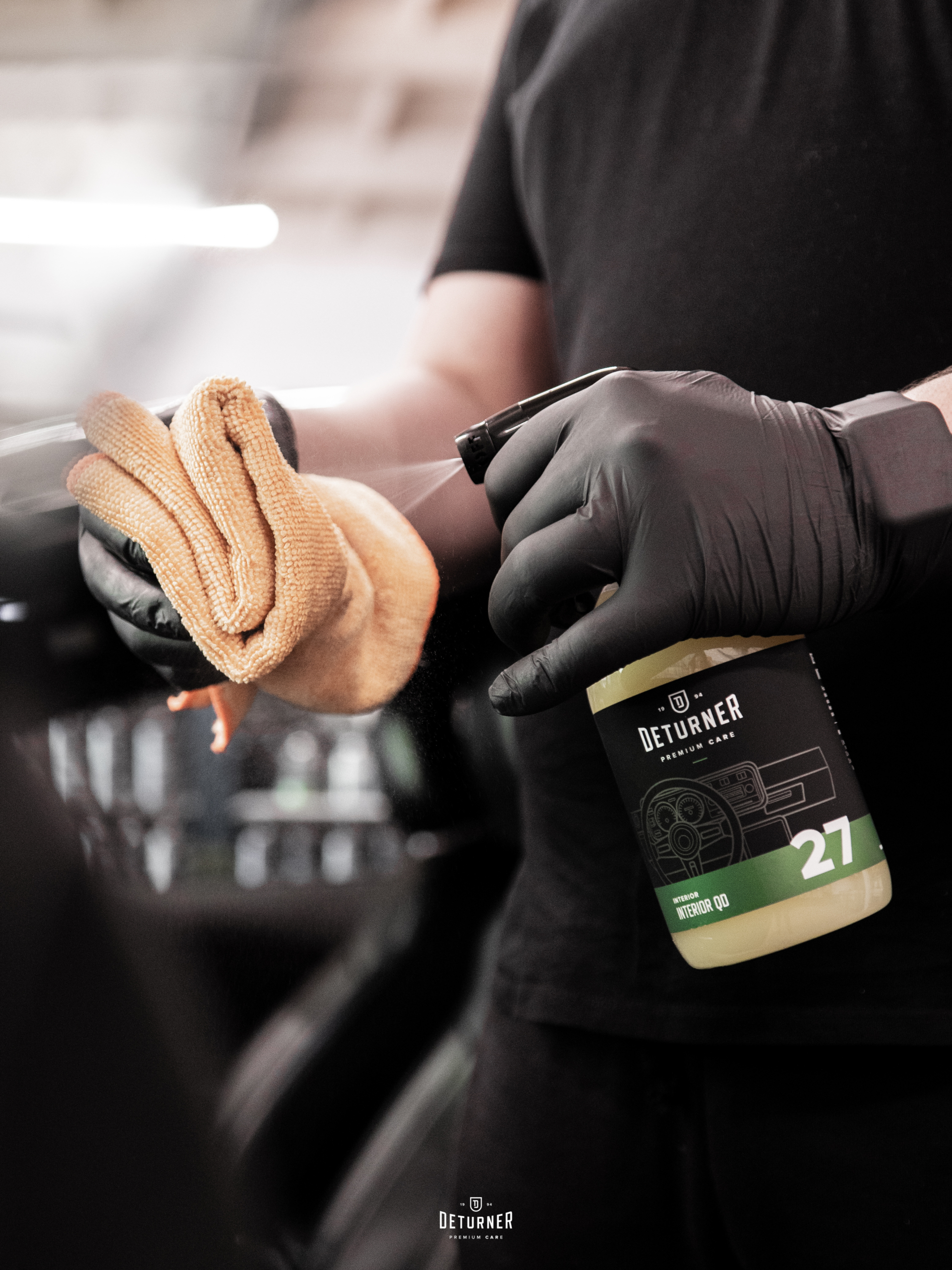 - Informacja: Pamiętaj, że produkt jest przeznaczony do bieżącej pielęgnacji. W przypadku silniejszych zabrudzeń, przed użyciem Interior QD, wyczyść powierzchnię dedykowanym środkiem, np. Deturner Ready Interior Cleaner.