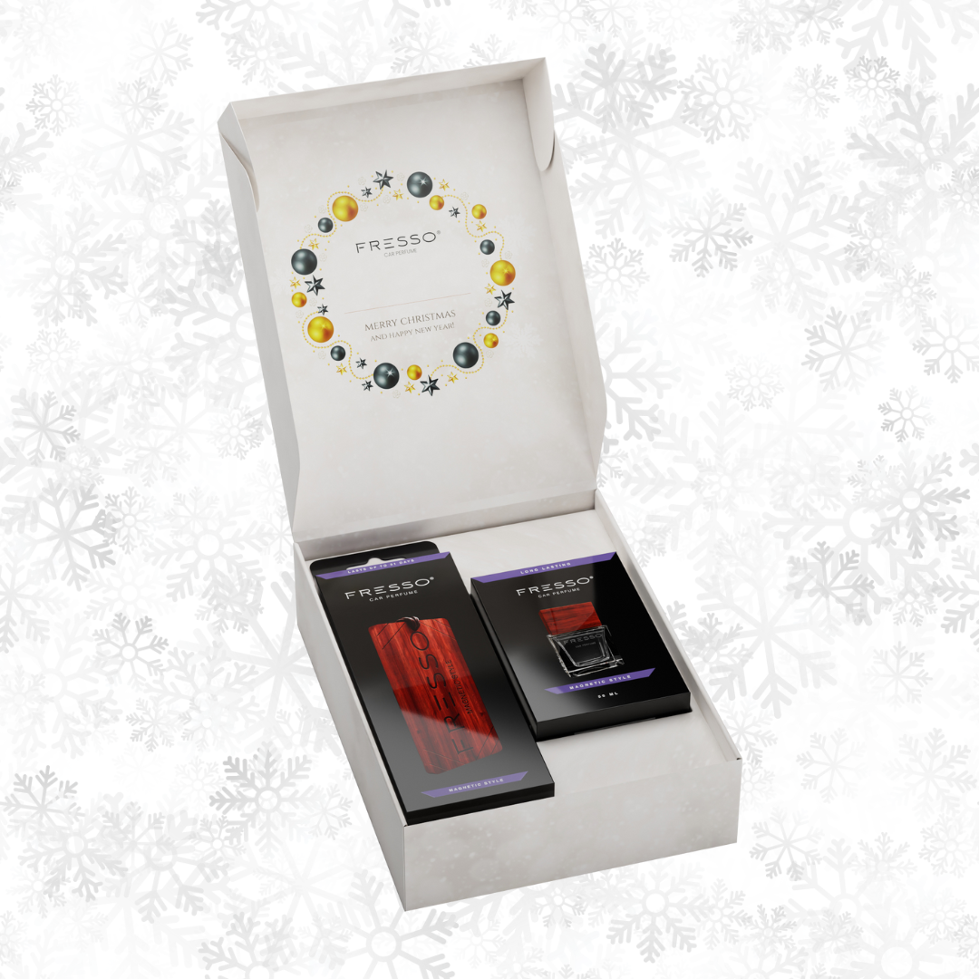 Fresso Magnetic Style to idealny prezent świąteczny, który wnosi do auta elegancję i subtelny, harmonijny aromat. Zestaw łączy praktyczny atomizer i dekoracyjną zawieszkę, tworząc produkt zarówno estetyczny, jak i funkcjonalny. Aromat jest trwały, wyważony i uniwersalny, idealny na co dzień i wyjątkowe okazje.