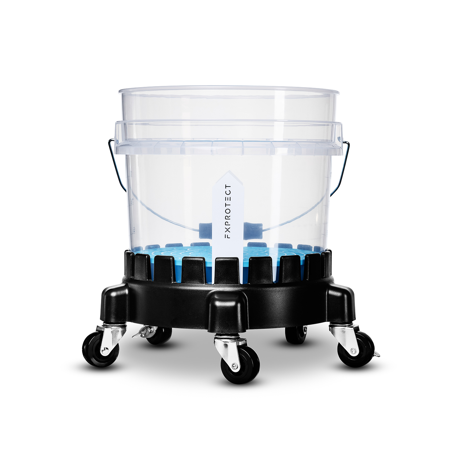 FX PROTECT MINI Clear 16L + Dirt Guard + Bucket Dolly to kompletny, mobilny system do bezpiecznego mycia auta. Transparentne ścianki wiadra zapewniają pełną kontrolę nad czystością wody, nadrukowana miarka ułatwia dozowanie chemii, a separator Dirt Guard oddziela brud od czystej wody, minimalizując ryzyko mikro-zarysowań. Wózek transportowy Bucket Dolly o udźwigu do 113 kg pozwala wygodnie i stabilnie przemieszczać nawet w pełni napełnione wiadra – pięć obrotowych kółek (w tym dwa z hamulcem) daje płynność ruchu i bezpieczeństwo pracy. Wszystkie elementy wykonano z wytrzymałego HDPE odpornego na chemię i odkształcenia.