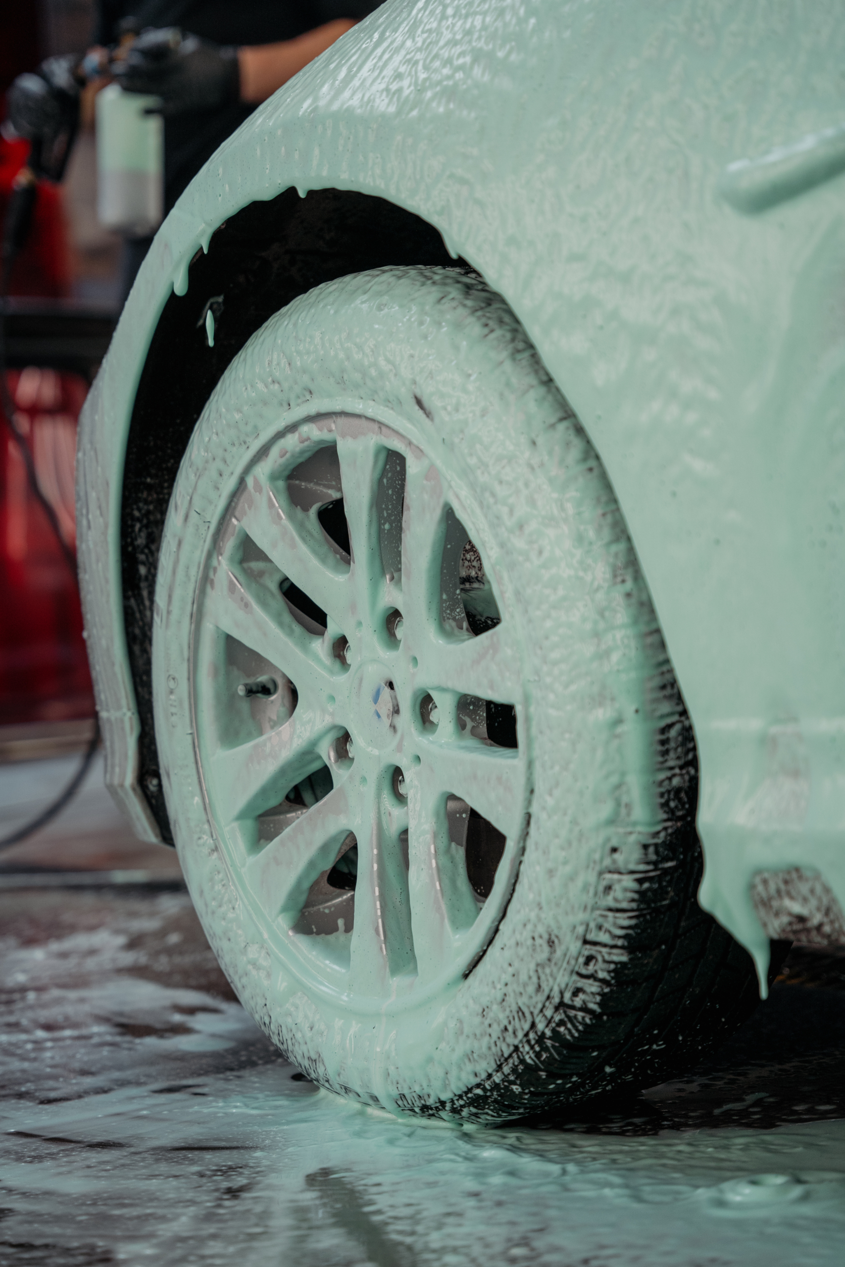 - Po około 5-7 minutach spłucz całe auto pod ciśnieniem