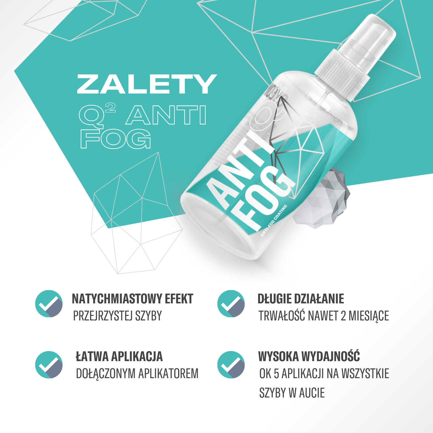 Gyeon Q² AntiFog to skuteczny preparat, który zapobiega parowaniu szyb samochodowych nawet do 2 miesięcy po jednej aplikacji. Poprawia widoczność, zwiększa bezpieczeństwo jazdy i jest niezwykle wydajny. Idealny do stosowania w sezonie jesienno-zimowym i nie tylko.