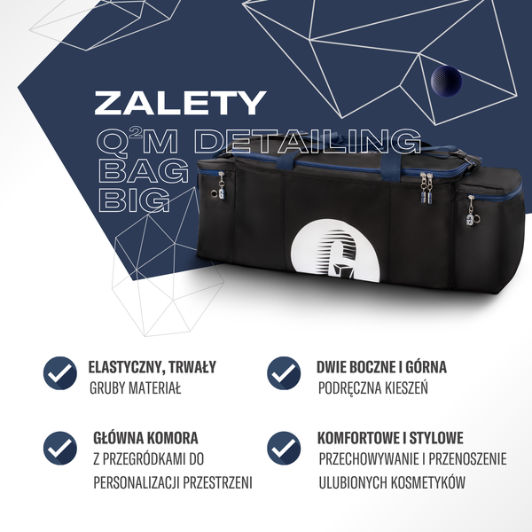 GYEON Q²M Detail Bag XL to pojemna, wytrzymała torba stworzona z myślą o profesjonalnym przechowywaniu i transporcie kosmetyków samochodowych. Dzięki przemyślanemu układowi przegródek, usztywnionym ściankom i trwałym materiałom, idealnie nadaje się zarówno dla profesjonalistów, jak i pasjonatów detailingu.