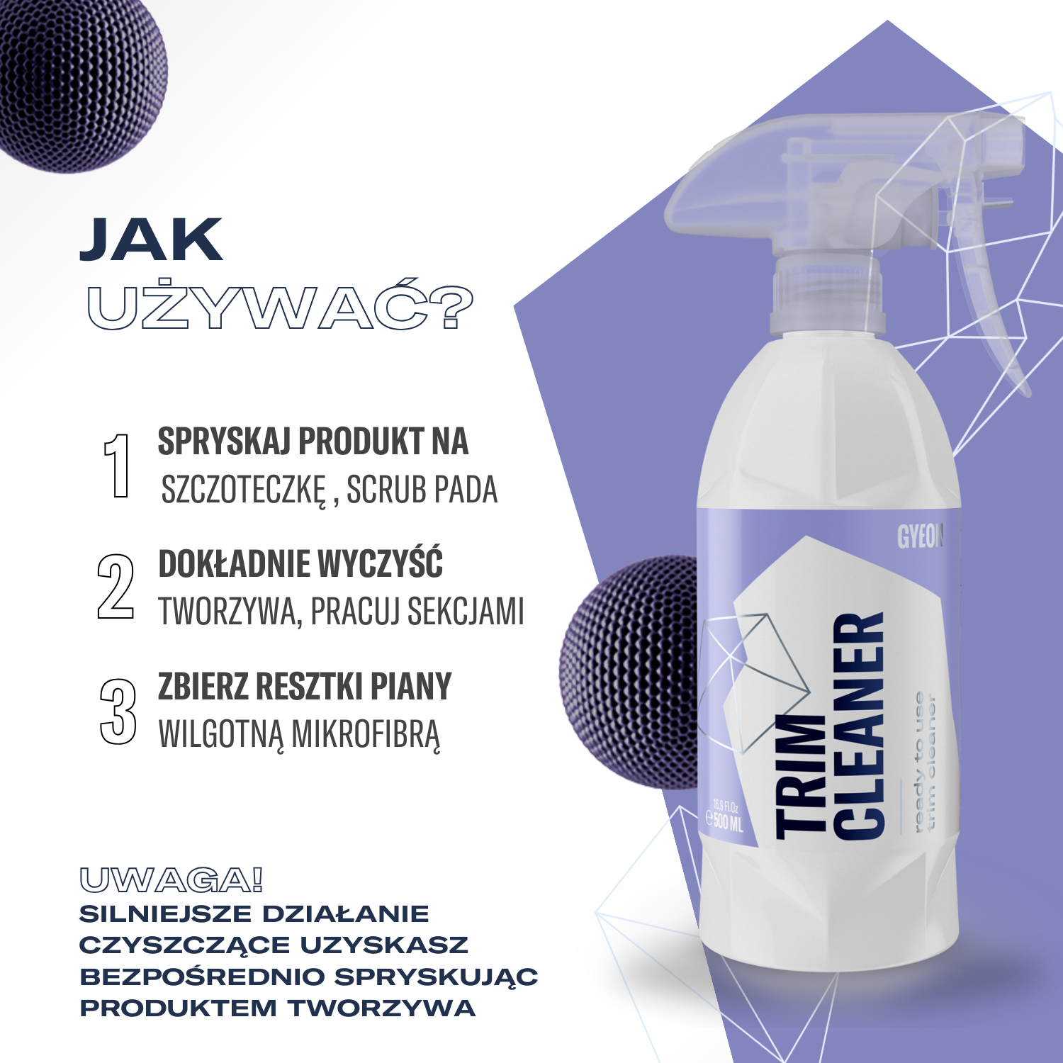 Spryskaj niewielką ilością GYEON Q²M TrimCleaner czyszczoną powierzchnię lub mikrofibrę.
