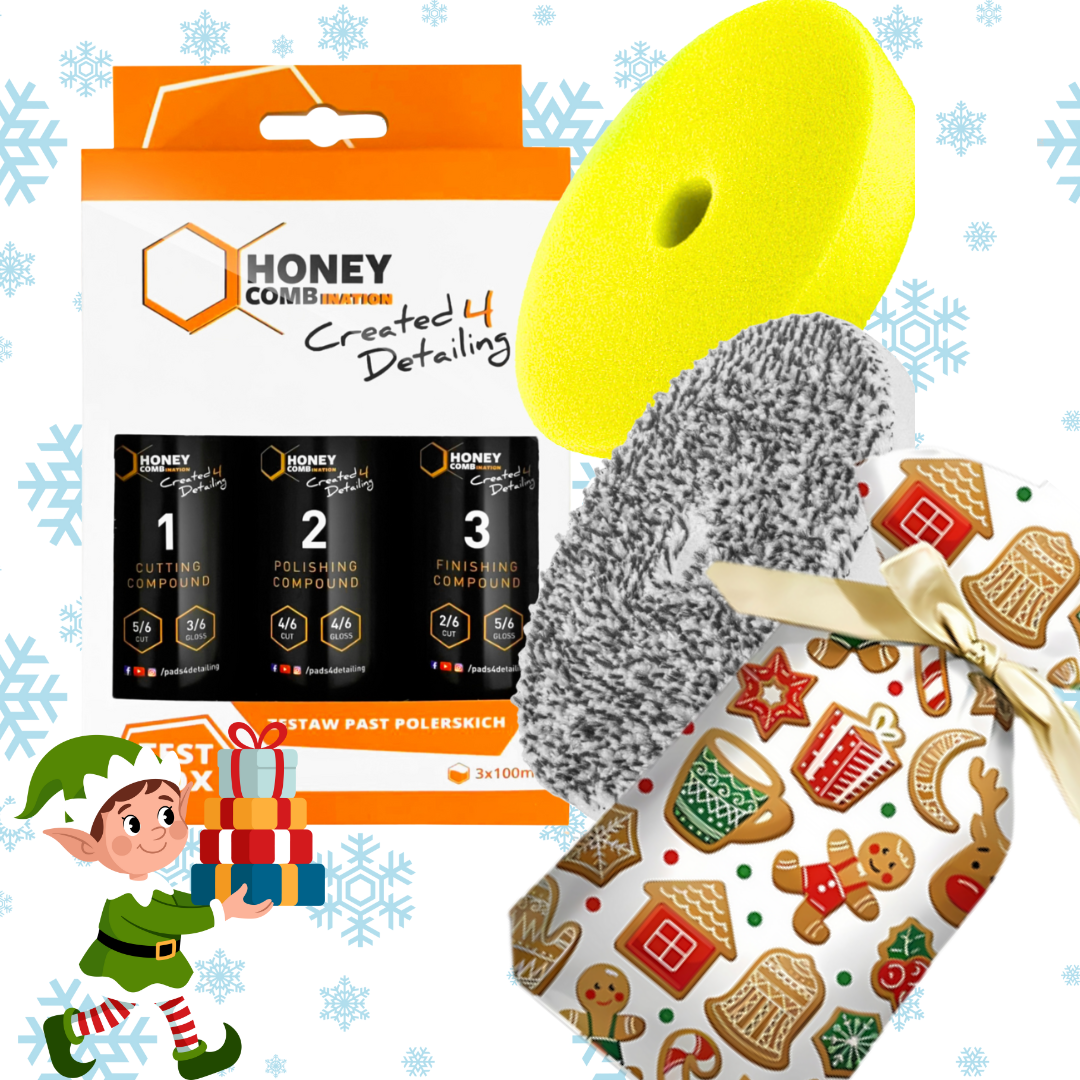 Przedstawiamy kompletny Zestaw Prezentowy Honey Combination, który jest idealnym pakietem startowym dla każdego profesjonalisty i entuzjasty detailingu. Ten przemyślany zestaw łączy w sobie pełen przekrój legendarnych past polerskich (TestBox) z dwoma specjalistycznymi padami polerskimi (mikrofibrowym i piankowym), pozwalając na przeprowadzenie pełnej i skutecznej renowacji lakieru.