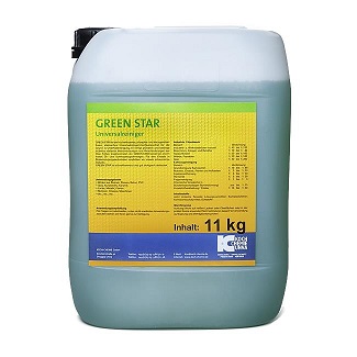 Koch Chemie Green Star to silnie skoncentrowany, nie zawierający fosforanów i rozpuszczalników, alkaliczny, uniwersalny środek czyszczący. Ze względu na bardzo dużą zdolność rozpraszania brudu i oleju, znajduje wszechstronne zastosowanie do czyszczenia posadzek warsztatowych i przemysłowych, czyszczenia wewnątrz i od zewnątrz samochodów osobowych i ciężarowych oraz mycia silników. Specjalne inhibitory korozji zapewniają wysoką tolerancję materiału, nawet wrażliwych elementów, takich jak np. anodowane aluminium. Przy zastosowaniu w urządzeniach do prania ekstrakcyjnego i innych urządzeniach do czyszczenia dywanów zalecamy dodanie środka przeciwpieniącego Kocentschäumer. Nadaje się również optymalnie do biologicznych stacji uzdatniania wody użytkowej. Ulega szybkiemu oddzieleniu i został sprawdzony według normy ÖNORM 5105 (stężenie testowe: roztwór 10%). Zgodność z normami VDA, klasa A: czas działania max. 5 min., max. stężenie aplikacji 1:3