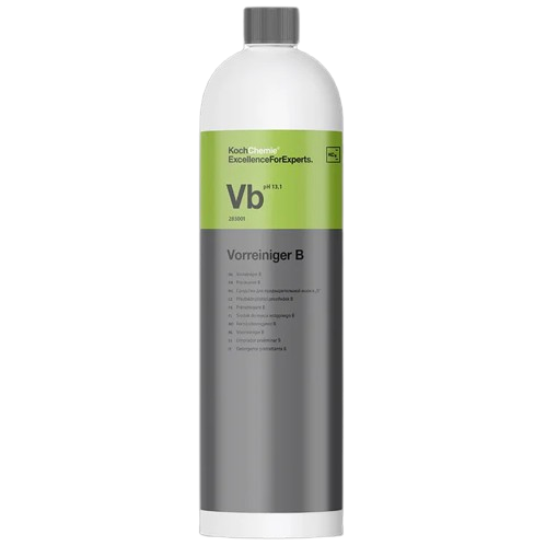 Vorreiniger B jest mocno skoncentrowanym, alkalicznym i wysoko pieniącym specjalnym środkiem czyszczącym przeznaczonym do wstępnego mycia samochodów osobowych i ciężarowych. Kombinacja wysokowartościowych związków chemicznych mających właściwości powierzchniowo czynne rozpraszają w mgnieniu oka nie tylko ogólny bród i kurz uliczny, ale również uparte zabrudzenia jak insekty, ptasie ekskrementy i inne statyczne zanieczyszczenia. Inhibitory korozji zapewniają wysoką wytrzymałość elementów takich jak np. anodyzowanego aluminium.