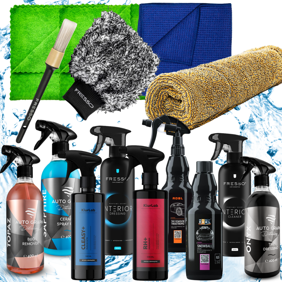 Kompletny zestaw detailingowy do pielęgnacji auta — zarówno wnętrza, jak i karoserii. Zawiera aż 15 starannie dobranych produktów renomowanych marek, które zadbają o lakier, szyby, felgi, opony i wnętrze Twojego samochodu. Idealny dla miłośników detailingu i osób ceniących perfekcyjny wygląd auta.