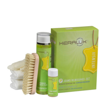 KERALUX Jeans Reinigungs Set to specjalistyczny zestaw przeznaczony do czyszczenia silnych zabrudzeń oraz trwałych odbarwień, szczególnie tych spowodowanych przez spodnie typu jeans, garnitury czy inne barwiące tkaniny. Przeznaczony jest do skór licowych i lakierowanych, zarówno w tapicerce samochodowej, jak i meblowej.