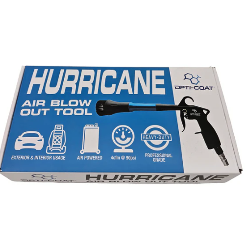 Narzędzie do wydmuchiwania powietrza HURRICANE firmy Opti-Coat to niezastąpione narzędzie dla profesjonalnych detailerów i entuzjastów motoryzacji. Drastycznie przyspiesza czas czyszczenia i poprawia rezultaty podczas czyszczenia wnętrza i karoserii pojazdów. W połączeniu ze sprężarką powietrza, 90 psi tworzy skoncentrowany wir powietrza, który unosi i zdmuchuje brud, piasek i zanieczyszczenia, osusza karoserię pojazdu, usuwa wodę ze szczelin panelowych, zakamarków i szczelin oraz czyści pady polerskie.