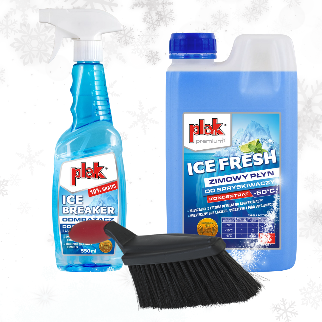 PLAK Zestaw Zimowy: Płyn do Spryskiwaczy, Odmrażacz, Szczotka do Śniegu