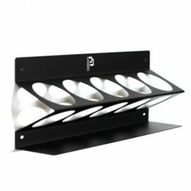 Mały uchwyt na butelki jest idealnym rozwiązaniem organizacji 5 ulubionych butelek o pojemności 1l. Bezpieczny dla atomizerów. Jest to również świetne rozwiązanie do przechowywania past polerskich. 4 otwory montażowe sprawiają, że uchwyt jest odporny na duże obciążenia. Jak we wszystkich naszych produktach nie ma ostrych narożników, co zapewnia bezpieczeństwo użytkowania.