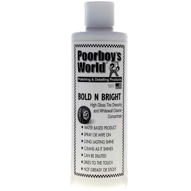 Poorboy’s Bold & Bright jest dressingiem do opon opartym na bazie wody dostarczającym subtelnego, satynowego wykończenia. Jest produktem całkowicie wolnym od rozpuszczalników i substancji ropopochodnych. Produkt nie pozostawia tłustego i lepkiego filmu.