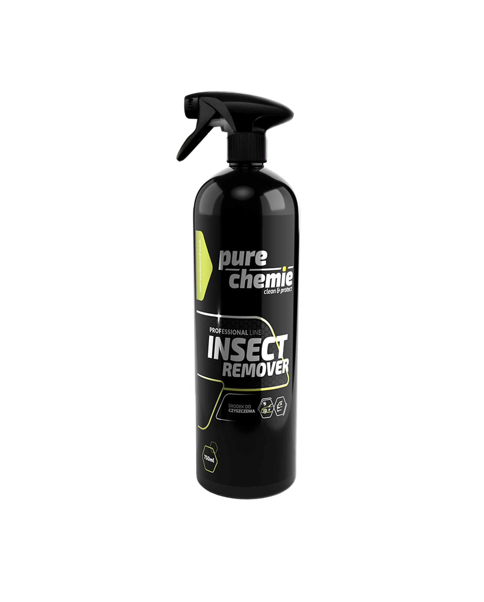 Pure Chemie Insect Remover bezpieczny i skuteczny preparat do usuwania pozostałości po owadach oraz innych zabrudzeniach pochodzenia organicznego, z karoserii samochodu. Dzięki unikalnej formule, rozpuszczane są tylko konkretne zabrudzenia o podłożu organicznym – preparat nie jest więc w pełni bezpieczny dla wosków i powłok ochronnych.