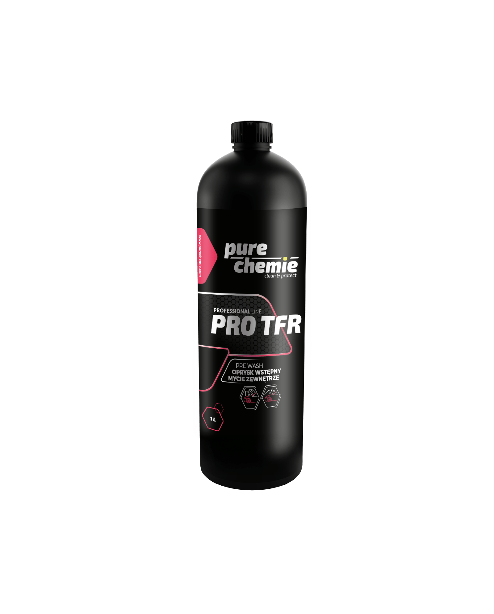 Pure Chemie PRO TFR to mocno skoncentrowany środek do bezdotykowego mycia wstępnego samochodów. Skutecznie usuwa film drogowy, tłuszcz i zabrudzenia, przygotowując lakier do dalszego mycia. Wydajna formuła pozwala usunąć nawet do 90% brudu bez kontaktu z powierzchnią