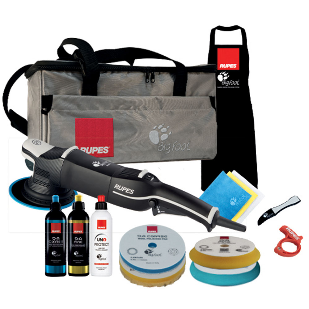 RUPES LHR 15 Mark V Zestaw LUX zawiera wszystko, co potrzebne do profesjonalnego polerowania i wykończenia powierzchni. Pakiet obejmuje m.in. pasty polerskie, kilka rodzajów padów i futer oraz praktyczne akcesoria, takie jak szczotka do czyszczenia padów czy mikrofibry i fartuch.