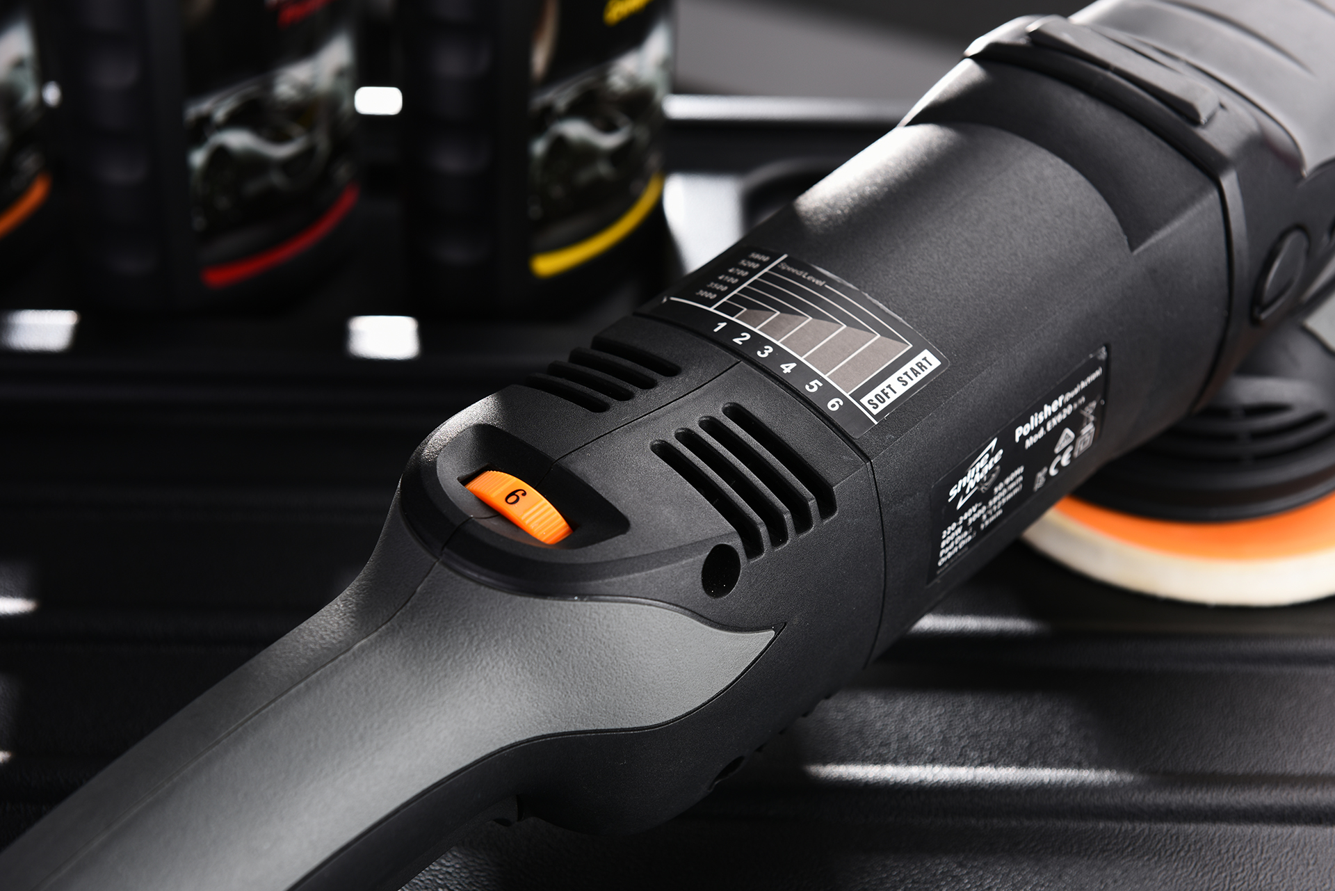 • Progresywny Przycisk: Pozwala na precyzyjne sterowanie prędkością polerki, co ułatwia dostosowanie tempa pracy do potrzeb użytkownika.