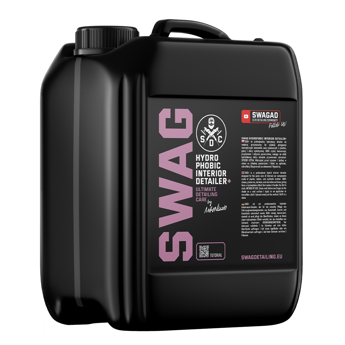Swag HYDROPHOBIC INTERIOR DETAILER+ to profesjonalny preparat do szybkiej pielęgnacji i konserwacji wewnętrznych elementów pojazdu wykonanych z tworzyw sztucznych, winylu i gumy. Produkt został stworzony z myślą o profesjonalistach oraz entuzjastach detailingu, którzy oczekują skutecznego działania, łatwej aplikacji i estetycznego wykończenia.