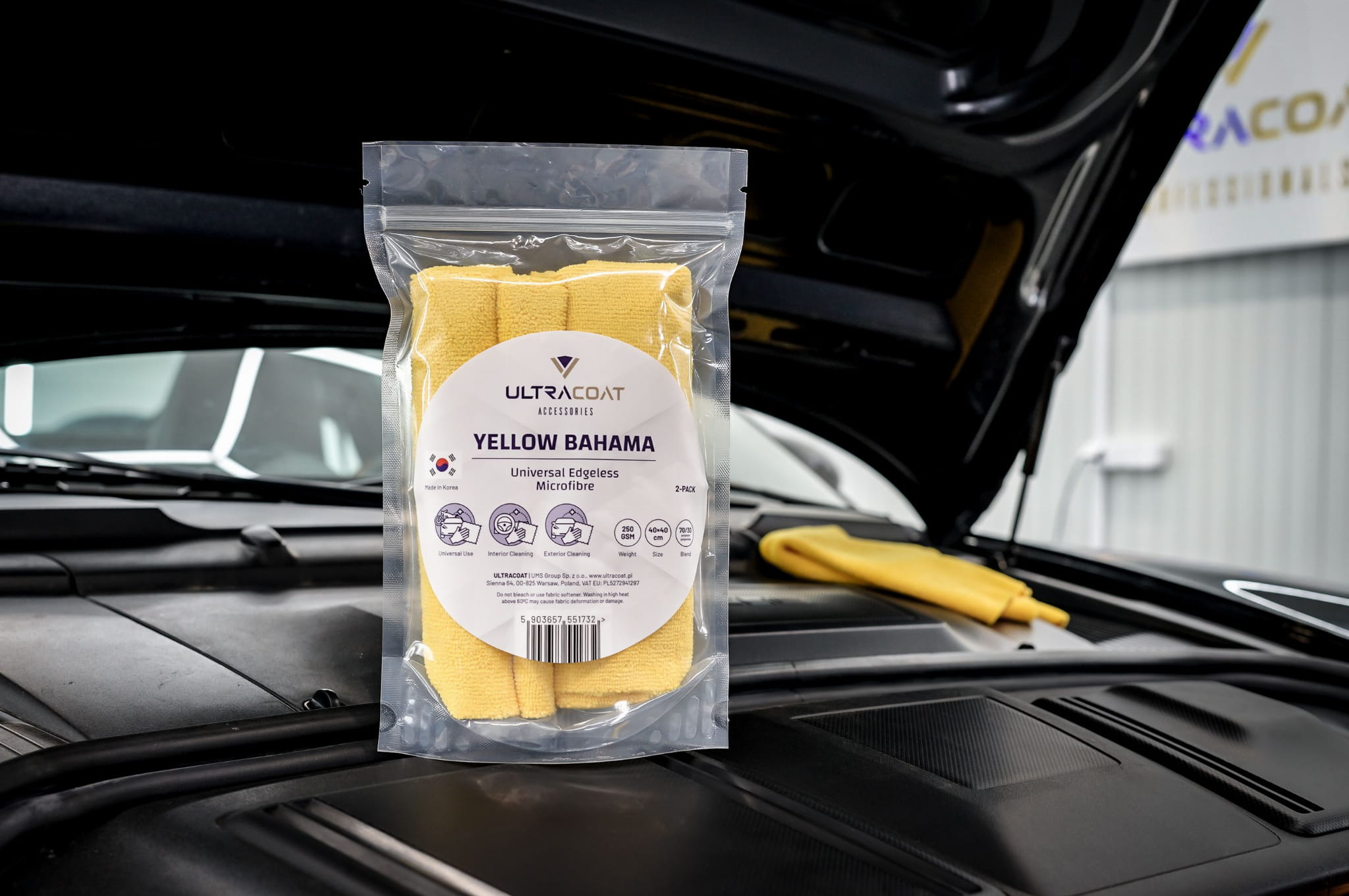 Ultracoat Yellow Bahama 2-pack zawiera ściereczki z koreańskiej mikrofibry. Są niezwykle delikatne, przez co są całkowicie bezpieczne nawet dla delikatnych powierzchni. Dobrze znoszą intensywną eksploatację. Nie gubią włosia, nie prują się, nie pylą itp.