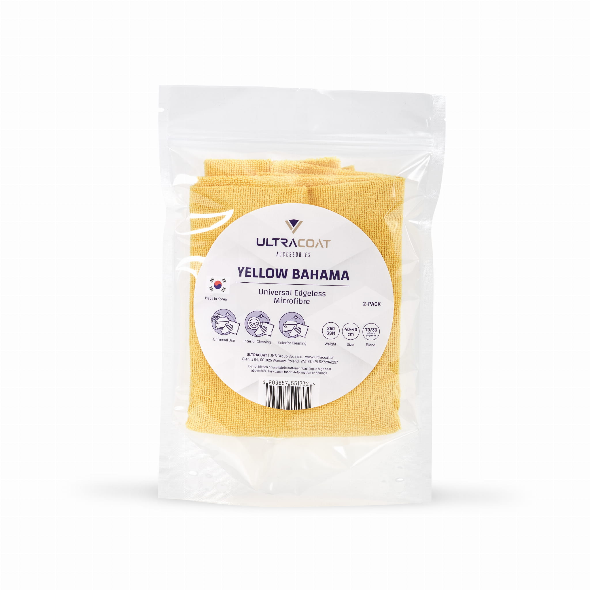 Ultracoat Yellow Bahama 2-pack to doskonały zestaw dwóch ściereczek z bezkrawędziowej mikrofibry, które znajdą swoje zastosowanie zarówno w profesjonalnym studio detailingowym, jak i w domowym warsztacie. Idealne do szerokiego zakresu prac, zarówno wewnątrz, jak i na zewnątrz pojazdu, te ściereczki sprawdzą się przy czyszczeniu tworzyw sztucznych, drewna, szkła, skóry, a także przy docieraniu powłok ochronnych i sealantów. Dzięki delikatnej, ale wytrzymałej konstrukcji, są całkowicie bezpieczne dla nawet najbardziej wrażliwych powierzchni.