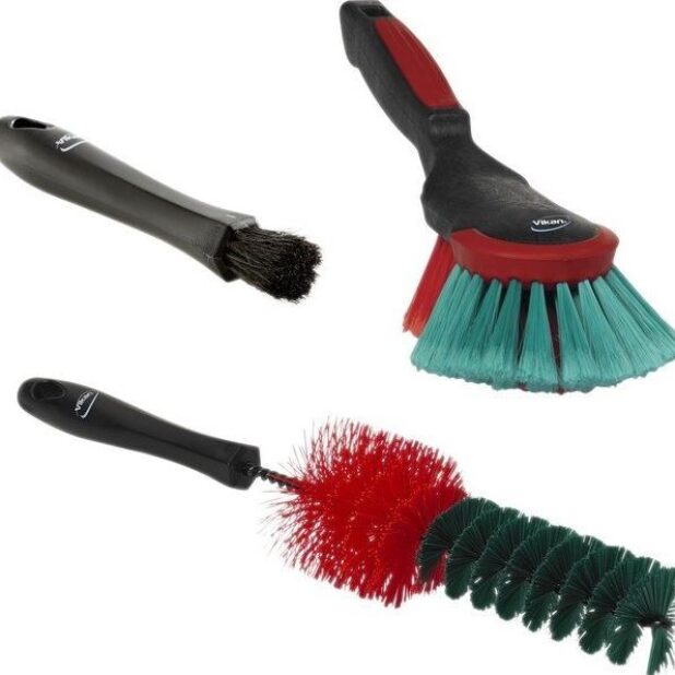 Zestaw składający się z trzech szczotek do czyszczenia pojazdów samochodowych firmy Vikan.