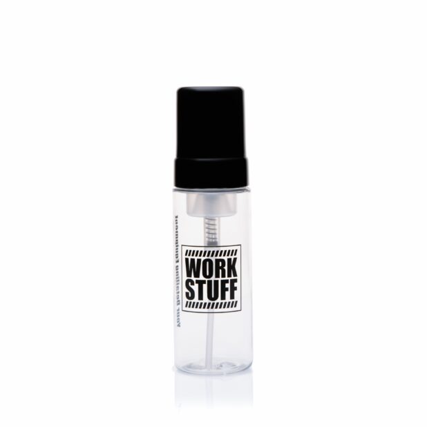 Work Stuff Foam Bottle 150 ml to kompaktowa, przezroczysta butelka z pompką, stworzona do precyzyjnej i kontrolowanej aplikacji środków czyszczących. Zamienia płyn w gęstą, równomierną pianę, co pozwala zminimalizować rozpryski, ograniczyć zużycie produktu i chronić wrażliwe powierzchnie. Idealna do aplikacji APC, środków do czyszczenia skóry czy produktów do wnętrz.