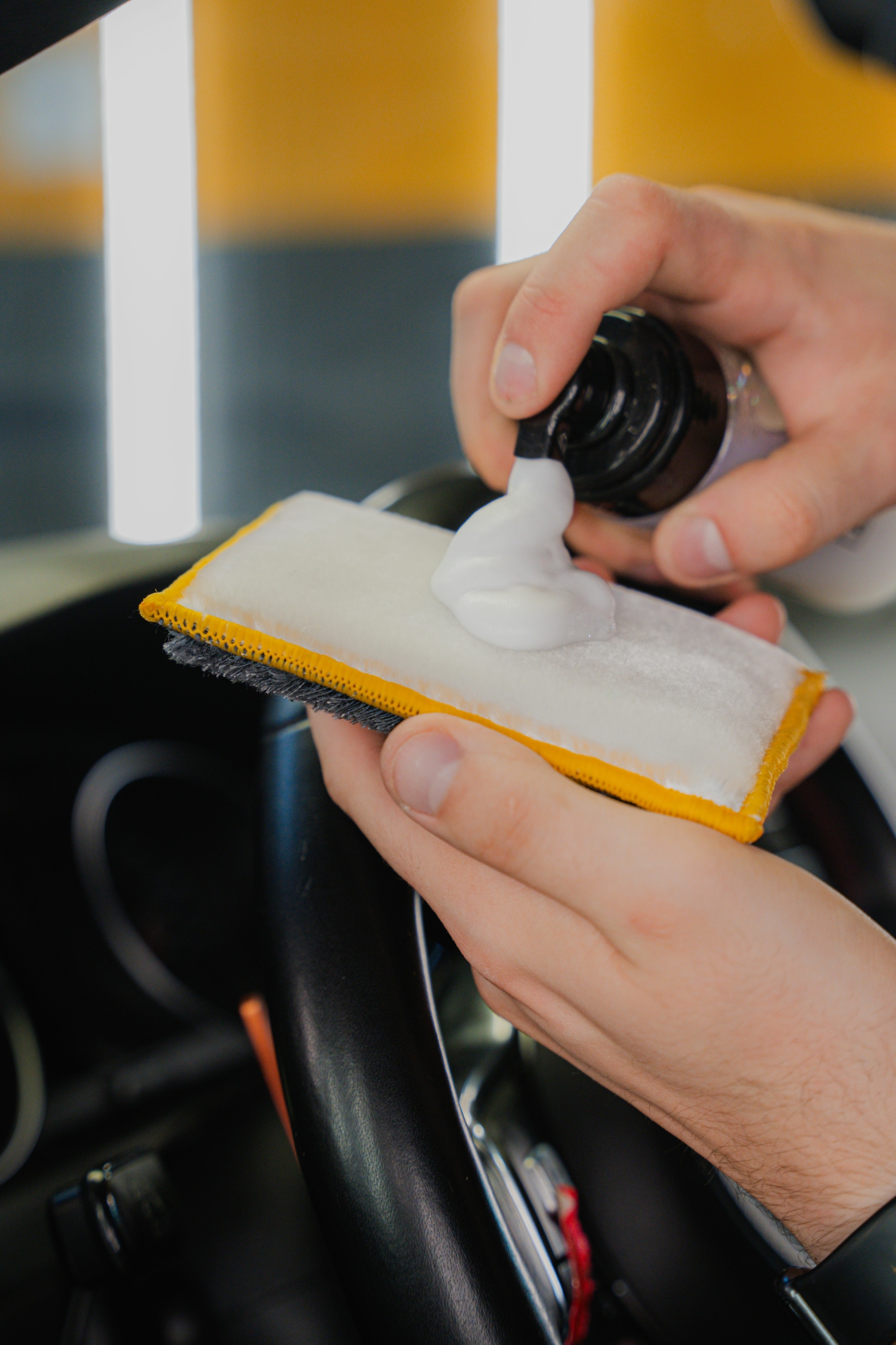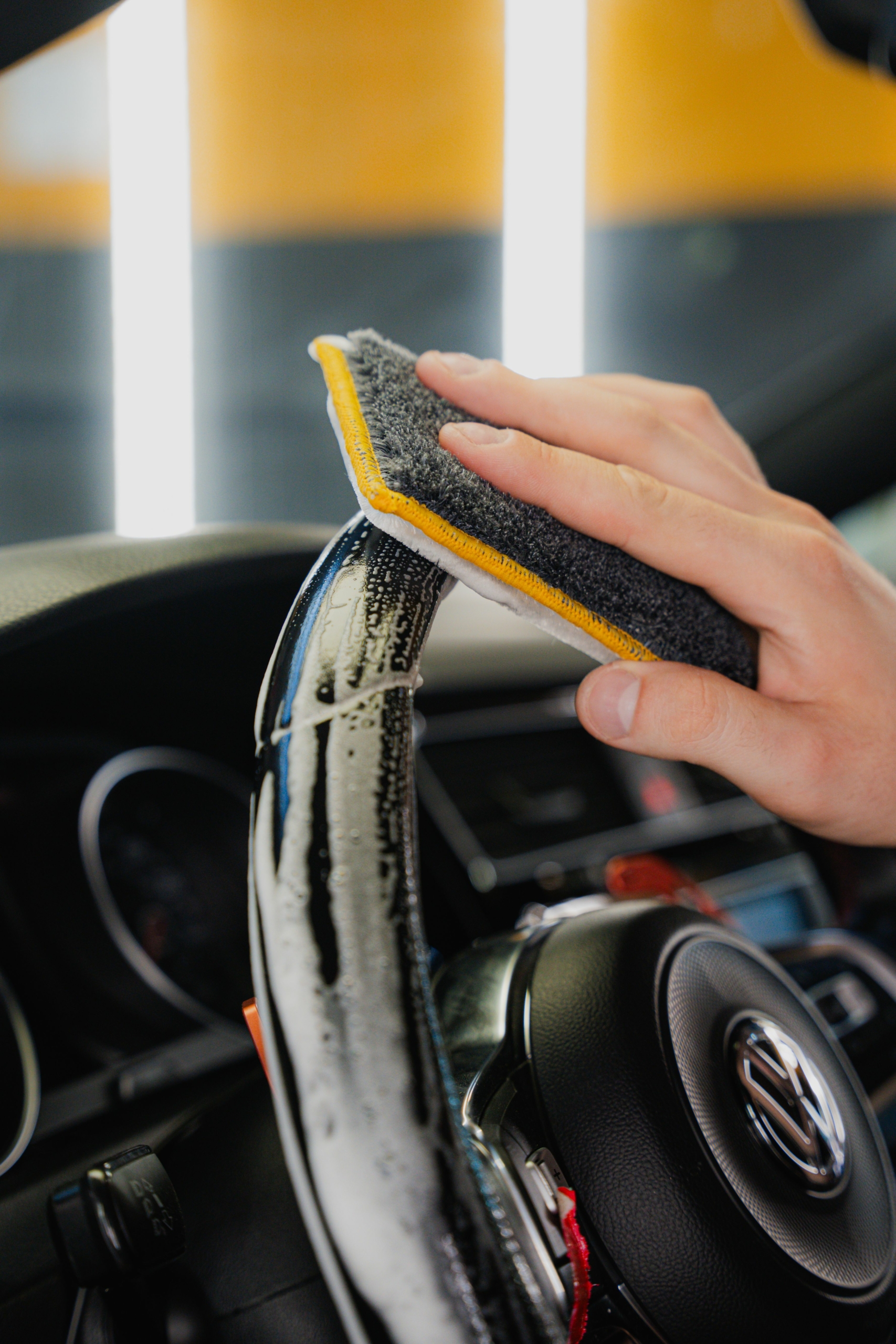 SCRUBBER PAD to innowacyjny, dwustronny pad, który rewolucjonizuje czyszczenie wnętrz samochodów. Z jednej strony wyposażony w nowoczesne włókno o wyjątkowych właściwościach czyszczących, a z drugiej w tradycyjną mikrofibrę. Idealnie sprawdza się do szybkiego i efektywnego czyszczenia elementów z plastiku, gumy, czy tapicerki skórzanej. Jego unikalna konstrukcja pozwala na bezpieczne usuwanie nawet najcięższych zabrudzeń ze wszystkich powierzchni strukturalnych. Małe wymiary SCRUBBER PAD’a umożliwiają dotarcie do najtrudniej dostępnych miejsc, a jego wysoka trwałość zapewnia długoterminowe użytkowanie. Wyprodukowany z renomowanej koreańskiej mikrofibry, charakteryzuje się on wysoką jakością przędzy, trwałością i wyjątkową absorpcją wody. To narzędzie, które musi znaleźć się w każdym zestawie do auto detailingu.