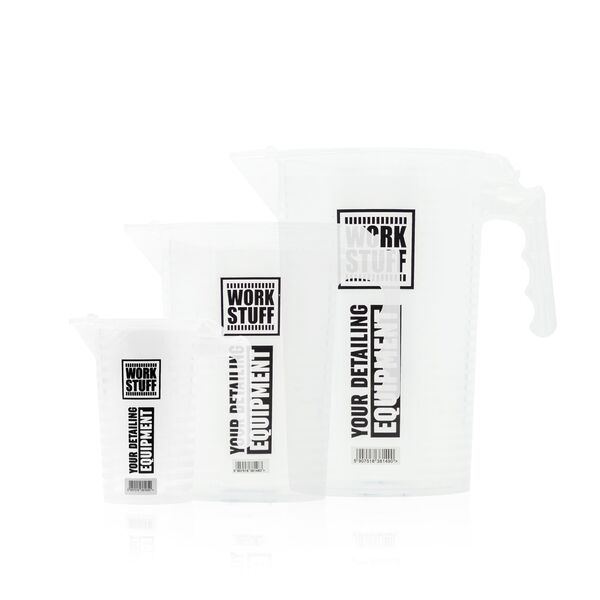 WORK STUFF Measuring Cup 100ml to praktyczna miarka z trwałego polipropylenu, odporna na chemię. Wyposażona w precyzyjną skalę, pokrywkę i sitko, które chronią przed rozlaniem i zatrzymują zanieczyszczenia. Niezastąpiona w detailingu i warsztacie.