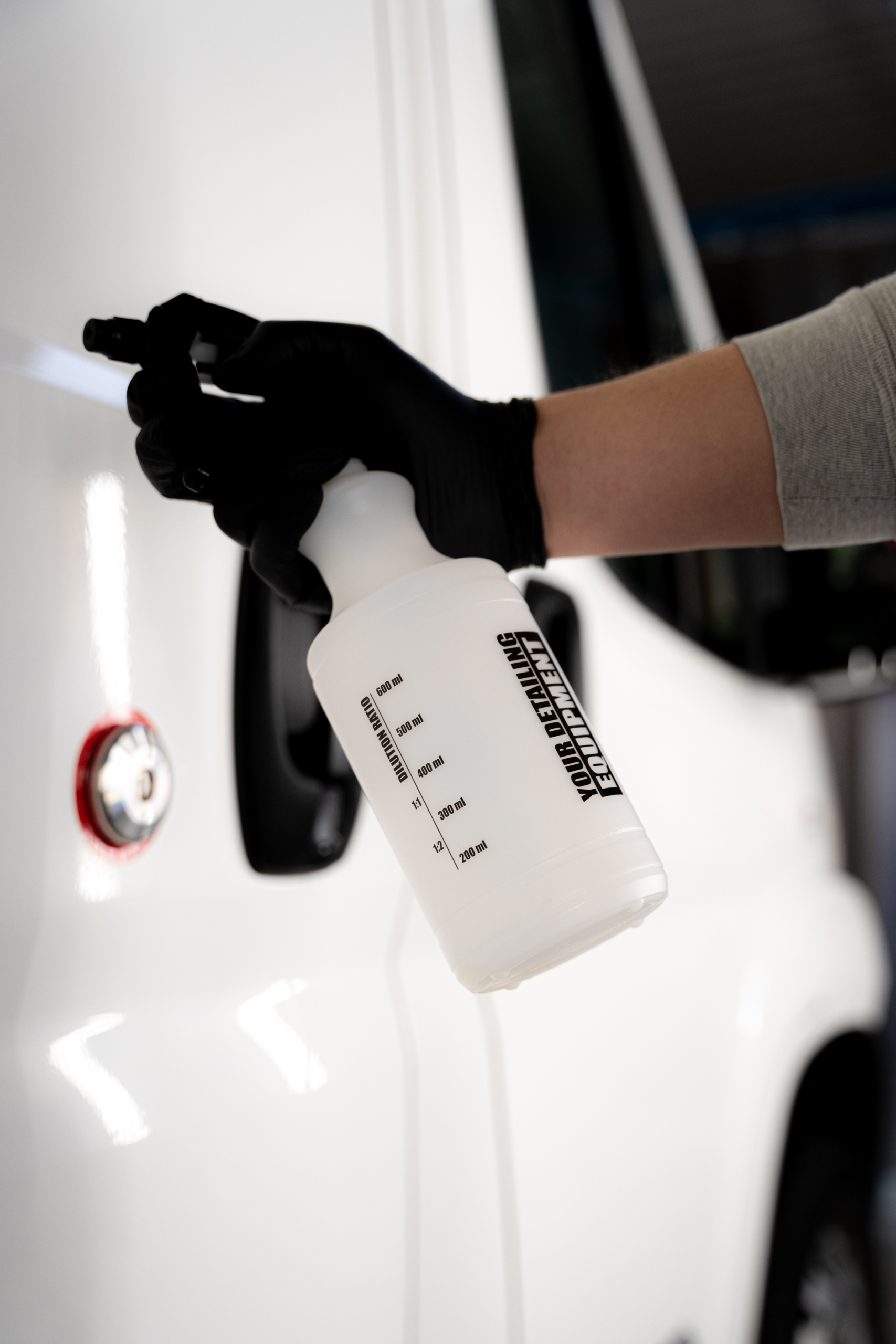 Dlaczego wybrać pojemność 750 ml a nie 1L? Wybór zależy od ergonomii. Butelka 750 ml po napełnieniu jest lżejsza, co jest odczuwalne przy długotrwałej pracy, np. przy glinkowaniu całego auta lub myciu szyb. Jest bardziej poręczna i łatwiej nią operować.
