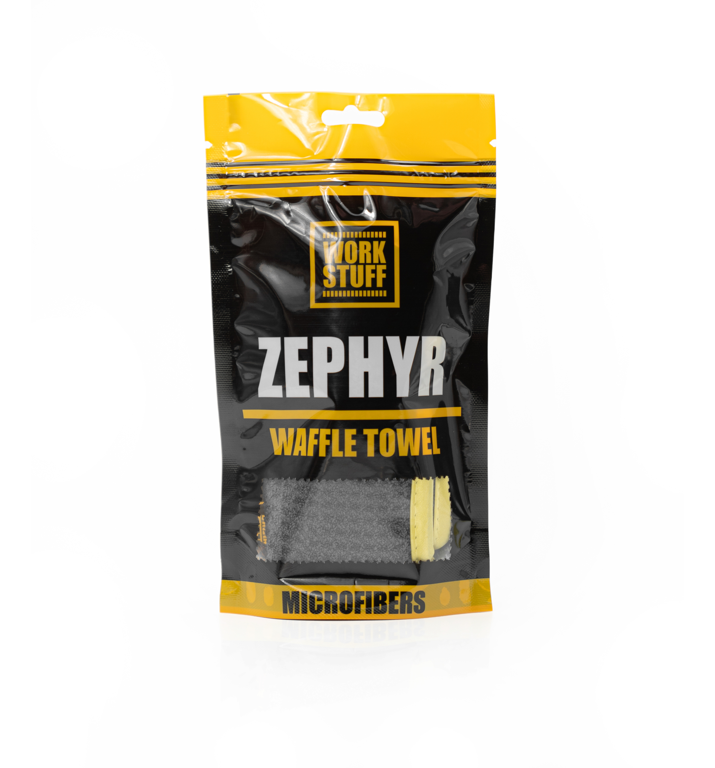 WORK STUFF Zephyr Waffle Towel wyróżnia się swoją wyjątkową fakturą. Jak wskazuje sama nazwa, jego powierzchnia przypomina wafla. Równomierne wgłębienia umożliwiają profesjonalne rozprowadzanie środków do czyszczenia, ich odpowiednie wchłanianie, a także dokładne zbieranie brudu. Ręcznik nie pozostawia smug, włókien ani żadnych drobinek. Wystarczy kilka ruchów, by uzyskać pożądane efekty.