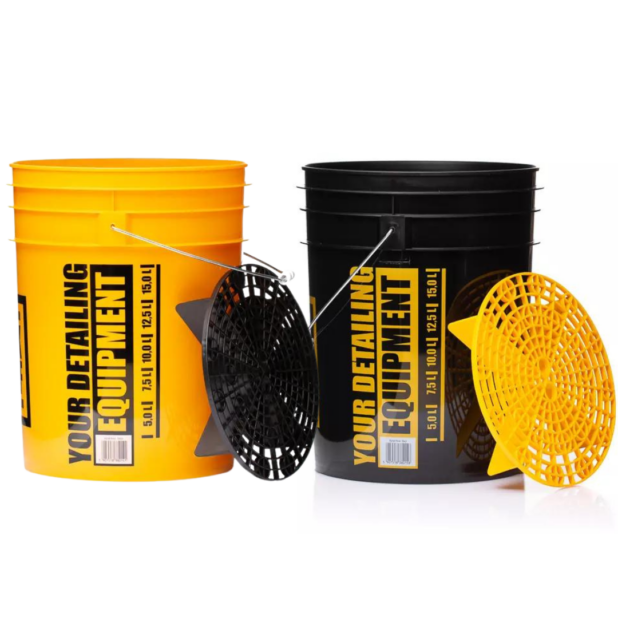 WORK STUFF Zestaw Wiader z separatorami to zdecydowanie najlepsze na rynku, profesjonalne wiadra polskiego producenta. Są wykonane z grubego tworzywa HDPE, które zapewnia niezawodną sztywność i wytrzymałość. Metalowa rączka jest odporna na oberwanie się, wygodnie leży w dłoni i nie wpija się podczas przenoszenia nawet bardzo dużej ilości płynu. Nadrukowana miarka pozwala na precyzyjne wyliczenie proporcji rozcieńczania specyfików do mycia i pielęgnacji auta.