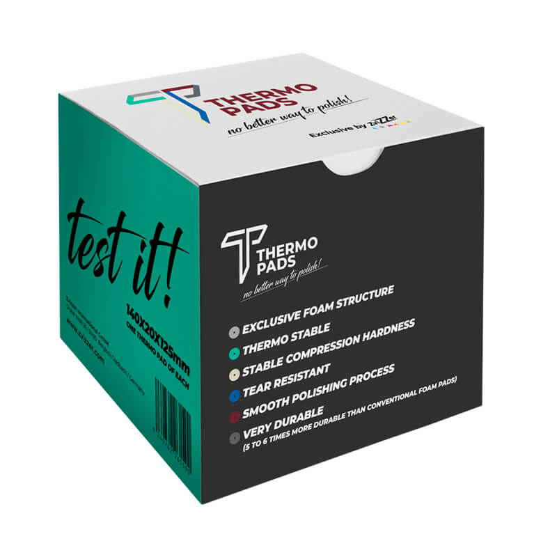 Posiadając zestaw 6 THERMO PAD’ów możesz dobrać odpowiednią siłę cięcia wybierając odpowiedni produkt. Zatem niezależnie, czy pracujesz na miękkim, czy twardym lakierze i niezależnie od stopnia jego zniszczenia w zestawie masz pełen arsenał produktów, które możesz wykorzystać. Pamiętaj, żeby zawsze zaczynać od najmniej agresywnej kombinacji i dopiero jeśli ona nie będzie wystarczająca korzystaj z twardszych padów.